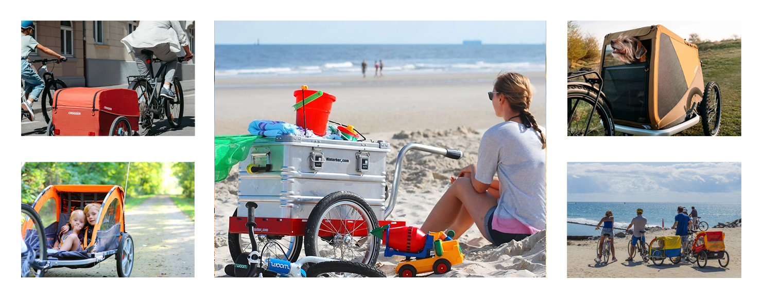 Våra egenutvecklade lösningar kopplar din cykelkärra säkert till nästan alla cyklar. Oavsett om det är en solid axel, genomgående axel eller snabbkoppling - oavsett om det är Croozer, Thule eller Qeridoo: våra cykelvagnskopplingar och adaptrar passar din elcykel, pedelec, mountainbike, stadscykel och många fler.