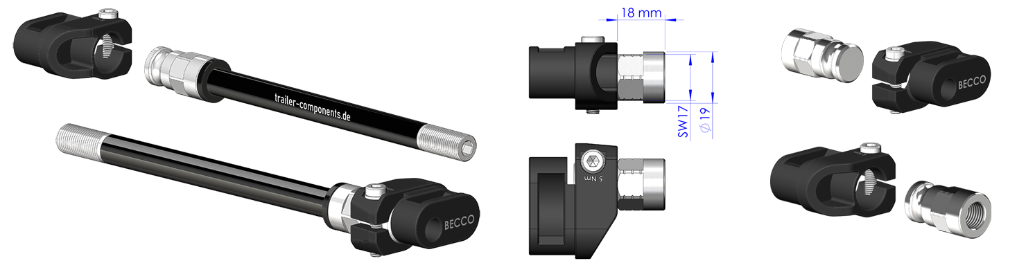 Genomgående axlar med adapter för LEGGERO-släpvagnar med BECCO-system. Tack vare vårt unika modulsystem som finns tillgängligt på marknaden kan du nu beställa din genomgående axel från oss med millimeterprecis passform.