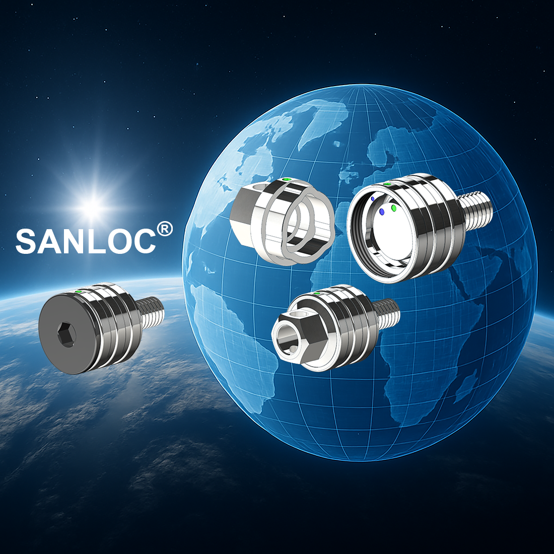 Patenterat nästa generations stöldskydd - nyckelkodat på samma sätt som ett fälglås och finns i flera hundra olika kodvarianter. Våra SANLOC®-mutter- och bultsatser, som är helt tillverkade av titan, kan skalas till alla vanliga gängstorlekar och bultlängder och kan därför användas inom många användningsområden.