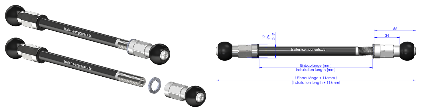 Genomgående axlar med adapter för LEGGERO-släpvagnar med BECCO-system. Tack vare vårt unika modulsystem som finns tillgängligt på marknaden kan du nu beställa din genomgående axel från oss med millimeterprecis passform.