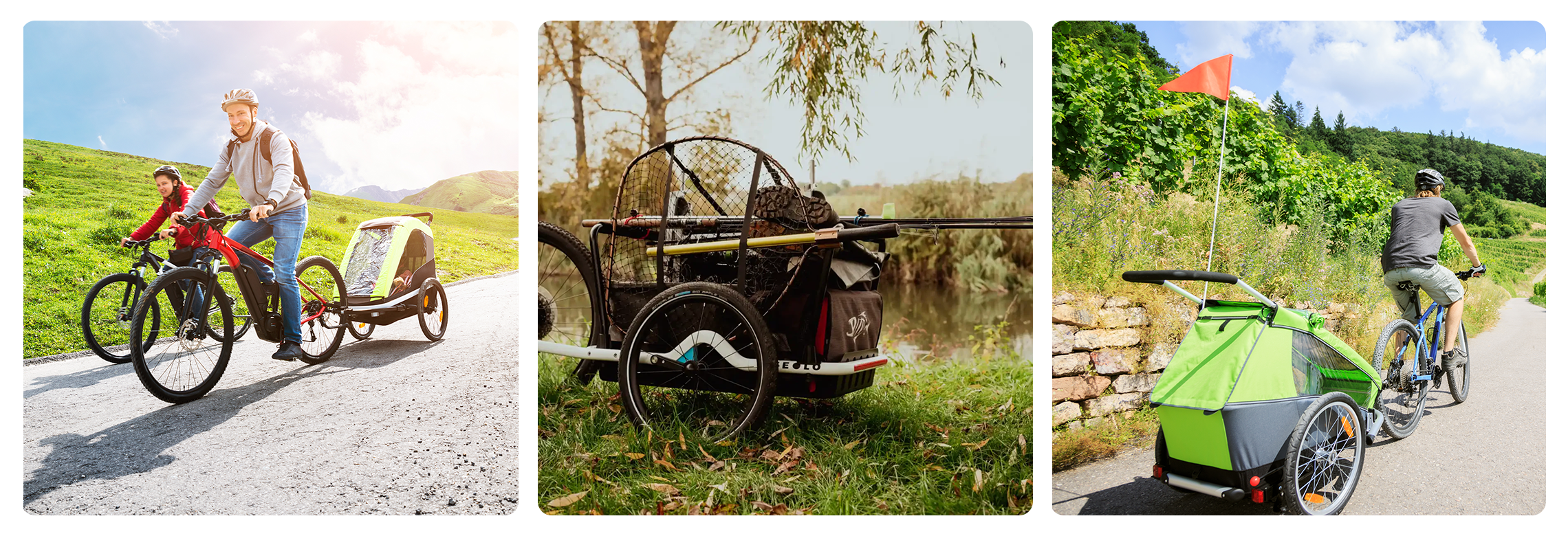 Våra egenutvecklade lösningar kopplar din cykelkärra säkert till nästan alla cyklar. Oavsett om det är en solid axel, genomgående axel eller snabbkoppling - oavsett om det är Croozer, Thule eller Qeridoo: våra cykelvagnskopplingar och adaptrar passar din elcykel, pedelec, mountainbike, stadscykel och många fler.