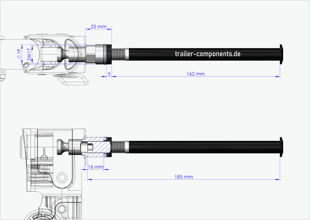 - Det är ditt ansvar att fastställa rätt gängstorlek och monteringslängd [mm] för din nuvarande genomgående axel på hjulet. Försök inte att montera vår genomgående axel med adapter i en annan gängstorlek i ditt bakhjulsnav. En felaktig gängstorlek kan skada din cykel. Om du är osäker på rätt gängstorlek och monteringslängd, kontakta oss via e-post eller telefon så hjälper vi dig gärna.