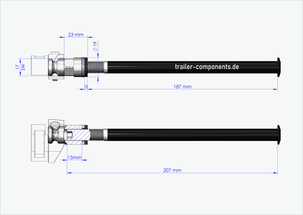 - Det är ditt ansvar att fastställa rätt gängstorlek och monteringslängd [mm] för din nuvarande genomgående axel på hjulet. Försök inte att montera vår genomgående axel med adapter i en annan gängstorlek i ditt bakhjulsnav. En felaktig gängstorlek kan skada din cykel. Om du är osäker på rätt gängstorlek och monteringslängd, kontakta oss via e-post eller telefon så hjälper vi dig gärna.