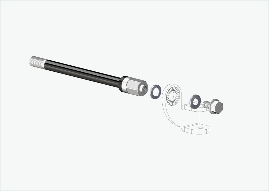 Alla våra drivaxlar är skräddarsydda för dig. Vi behöver den exakta monteringslängden [mm] och gängstorleken (stigningen) på den thru-axel som du har installerad.